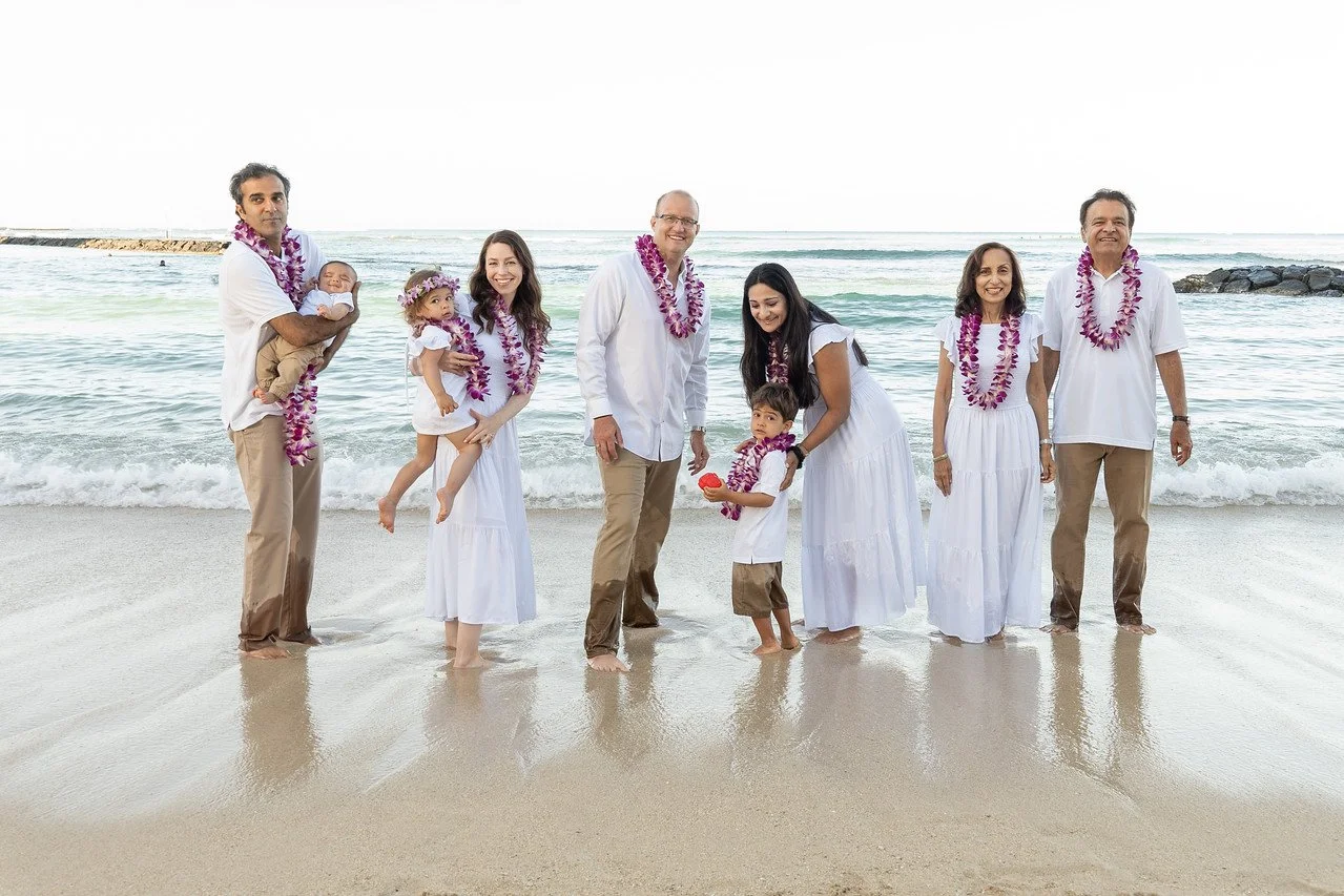 The Naina family are frequent visitors to the islands. They had been coming for 30 years and they wanted to celebrate with a photo session. I recommended hawaiian leis and had the mom present them to everyone and it made for a wonderful motion clip.